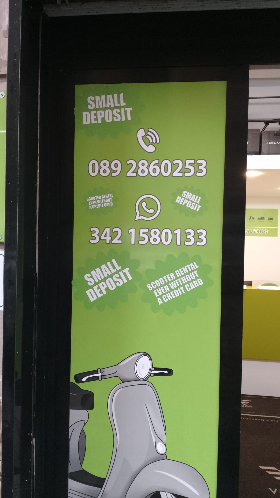 Rental Scooter DS di Luca De Simone a Salerno offre servizi di noleggio scooter, auto e furgoni, con la comodità di un deposito bagagli sicuro. Ideale per esplorare Salerno e la Costiera Amalfitana, i nostri scooter 125 sono disponibili per noleggi a breve e lungo termine. Scegli Rental Scooter DS per un’esperienza di noleggio facile e conveniente.